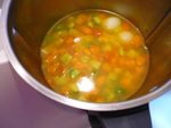 - Mettre la marmite knorr dans le bol avec 300 g d'eau, ajouter la brunoise et programmer 8 minutes sens inverse température 100 vitesse 1.