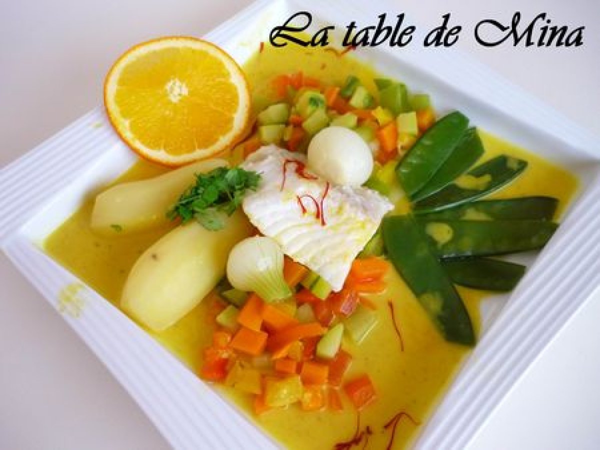 - Ajouter 1 cuillère à soupe d'huile de sésame, le jus de l'orange, 100 g de fumet, 2 cuillères à soupe de crème fraiche, 1 cuillère à soupe de fécule de pommes de terre et toutes les épices, + les safran.