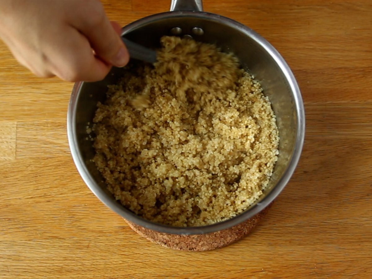 Sortez la casserole du feu puis laissez reposer le quinoa à couvert pendant 20 minutes afin qu'il finisse de gonfler.