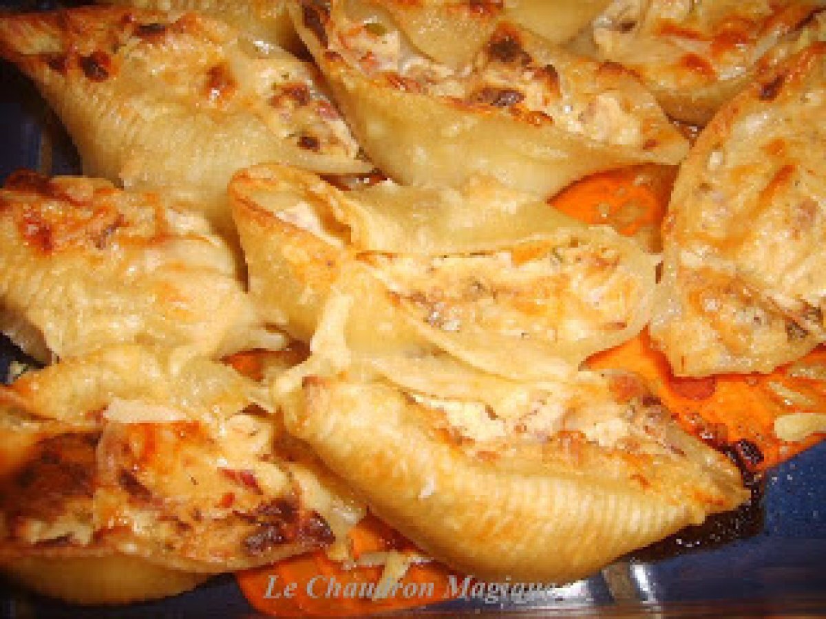 Conchiglionis à la ricotta, aux tomates séchées, aux courgettes, au jambon sec