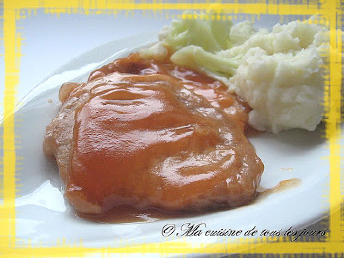 Côtelettes de porc au miel et à l'ail Platfacile40 min Envoyer cette recette à un ami Imprimer cette page Poser une question à l'auteur Publier votre photo de cette recette Ingrédients 6 6 côtelettes de porc 1/2 tasse de miel liquide 1/4 tasse de jus de citron 1/4 tasse d'eau 1/4 tasse de ketchup 2 gousses d'ail 1 cuillère à thé Sel poivre un peu de fécule de maïs eau