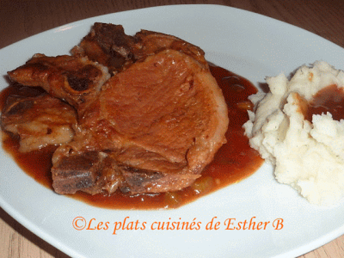 Côtelettes de porc (autocuiseur/presto) Platfacile18 min405 Kcal Envoyer cette recette à un ami Imprimer cette page Poser une question à l'auteur Publier votre photo de cette recette Ingrédients 6 6 côtelettes de porc 2 cuillères à soupe huile végétale ½ tasse (70 g) céleri émincé 1/3 tasse (45 g) poivron vert émincé ¼ tasse (35 g) oignon émincé 2 tomates, pelées et coupées en morceau Sel poivre 1 gousse ail émincée 1 cube de bouillon de poulet 1 tasse (250 ml) eau bouillante ¼ tasse (60 ml) de sauce barbecue (style Kraft) 3 cuillères à soupe mélasse 2 cuillères à soupe fécule de maïs (maïzena) ¼ tasse (60 ml) eau