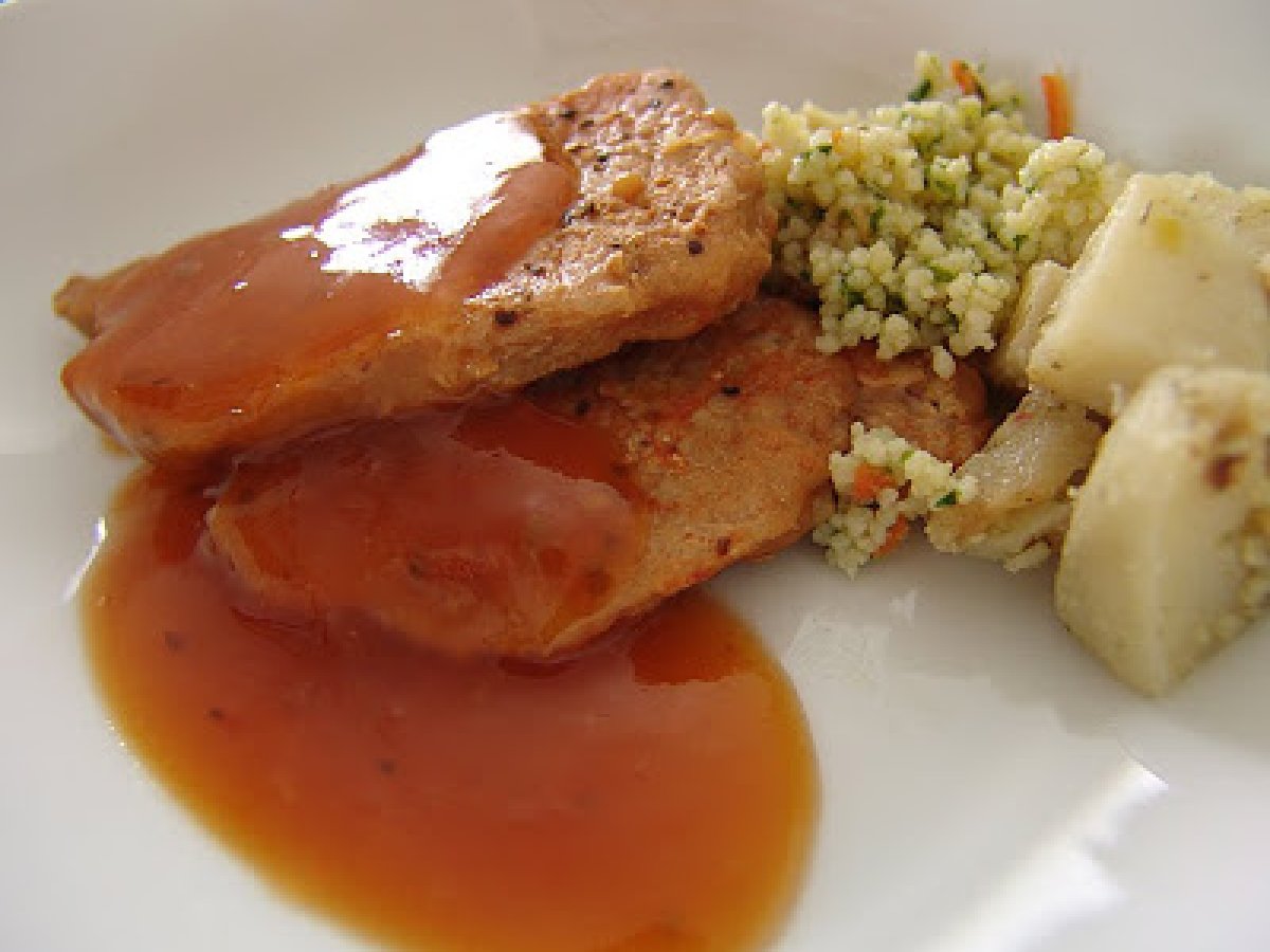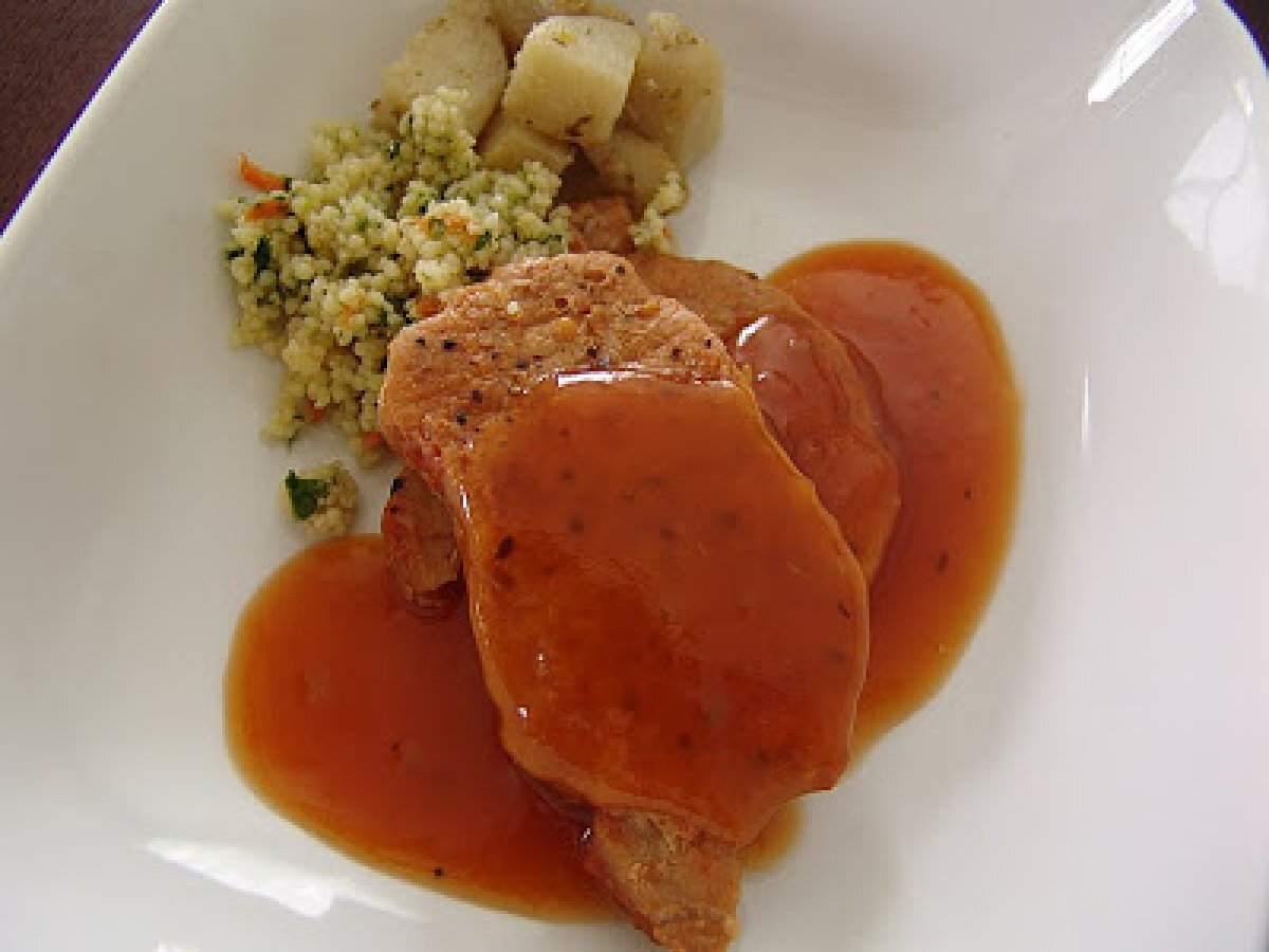 Côtelettes de porc sauce au miel, ail et à l'ananas votez maintenant PrécédentSuivant Platfacile1 h 15 m Envoyer cette recette à un ami Imprimer cette page Poser une question à l'auteur Publier votre photo de cette recette Ingrédients 4 8 à 9 côtelettes de porc désossées, pas trop épaisses 1/2 tasse de miel liquide 1/4 tasse de jus de citron 1/2 tasse de jus d'ananas 1/4 tasse de ketchup 2 gousses d'ail, écrasées 1 cuillère à thé de gingembre Sel et poivre Un peu de fécule de maïs et d'eau pour faire épaissir Un peu de beurre Épices à steak