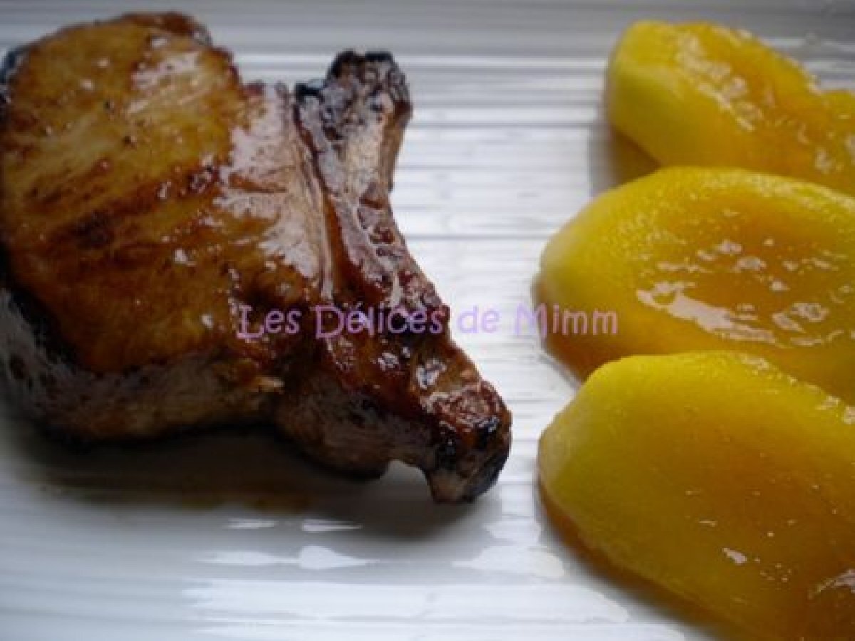 Côtes de porc ibérique (iberico) au miel et pommes caramélisées Platfacile30 min565 Kcal Envoyer cette recette à un ami Imprimer cette page Poser une question à l'auteur Publier votre photo de cette recette Ingrédients 2 2 côtes de porc ibérique 3 cuillères à soupe de beurre 2 pommes (Golden) 2 sachets de sucre vanillé 2 cuillères à café de miel 2 cuillères à café de vinaigre balsamique Coût estimé: 3.07Euros€ (1.54€/part)