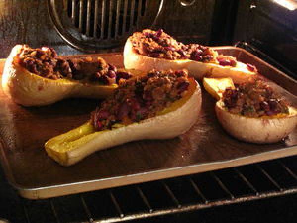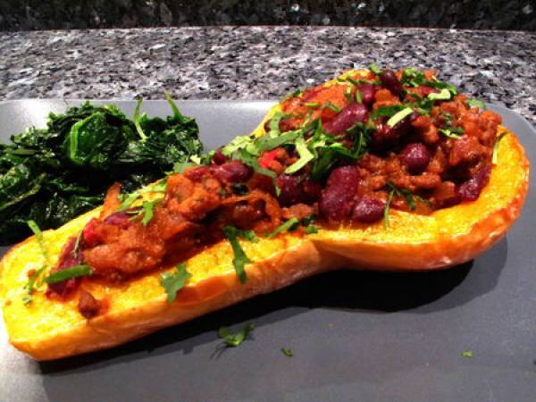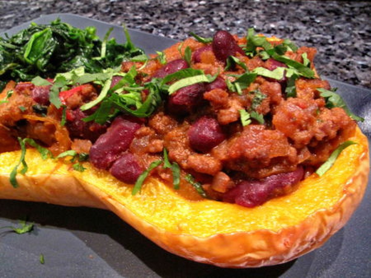 Voici une recette hyper simple et hyper parfumée. Cette courge tendre, sucrée, emplie d'un chili puissant et riche, le tout saupoudré de coriandre ciselée et accompagné d'une tombée d'épinards à la fois doux, amers et astringents, c'est un régal!