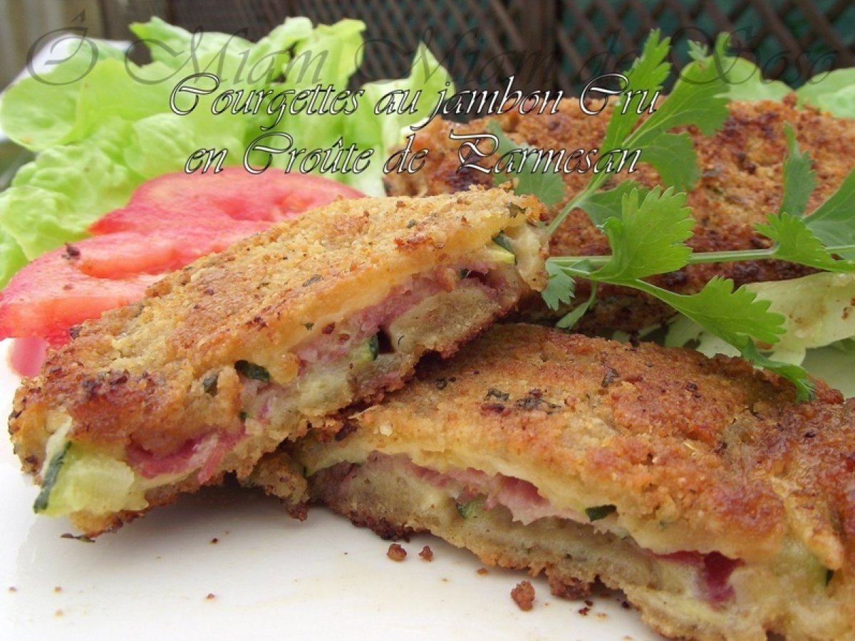 Courgettes au jambon cru en croute de parmesan Platfacile45 min Envoyer cette recette à un ami Imprimer cette page Poser une question à l'auteur Publier votre photo de cette recette Ingrédients 6 Toutes les idées sont bonnes à prendre lorsqu'il s'agit de faire manger des légumes aux enfants. Les courgettes panées ....Et pourquoi pas ! à peine imaginées, très vite préparées ! ... Elles sont simples et rapides à confectionner, gourmandes en croûte de parmesan , farcies au jambon cru et accompagnées d'une petite salade verte pour un repas complet. C'est le genre de menu rapide et très apprécié des enfants ! 2 courgettes ( moyennes) 10 tranches de jambon cru, 150 gr de chapelure, 4 à 5 càs de farine, 3 oeufs, 100 gr de parmesan, 1/2 bouquet de coriandre fraiche, 1 càs de beurre, 2 càs d'huile d'olive poivre du moulin (selon goût)