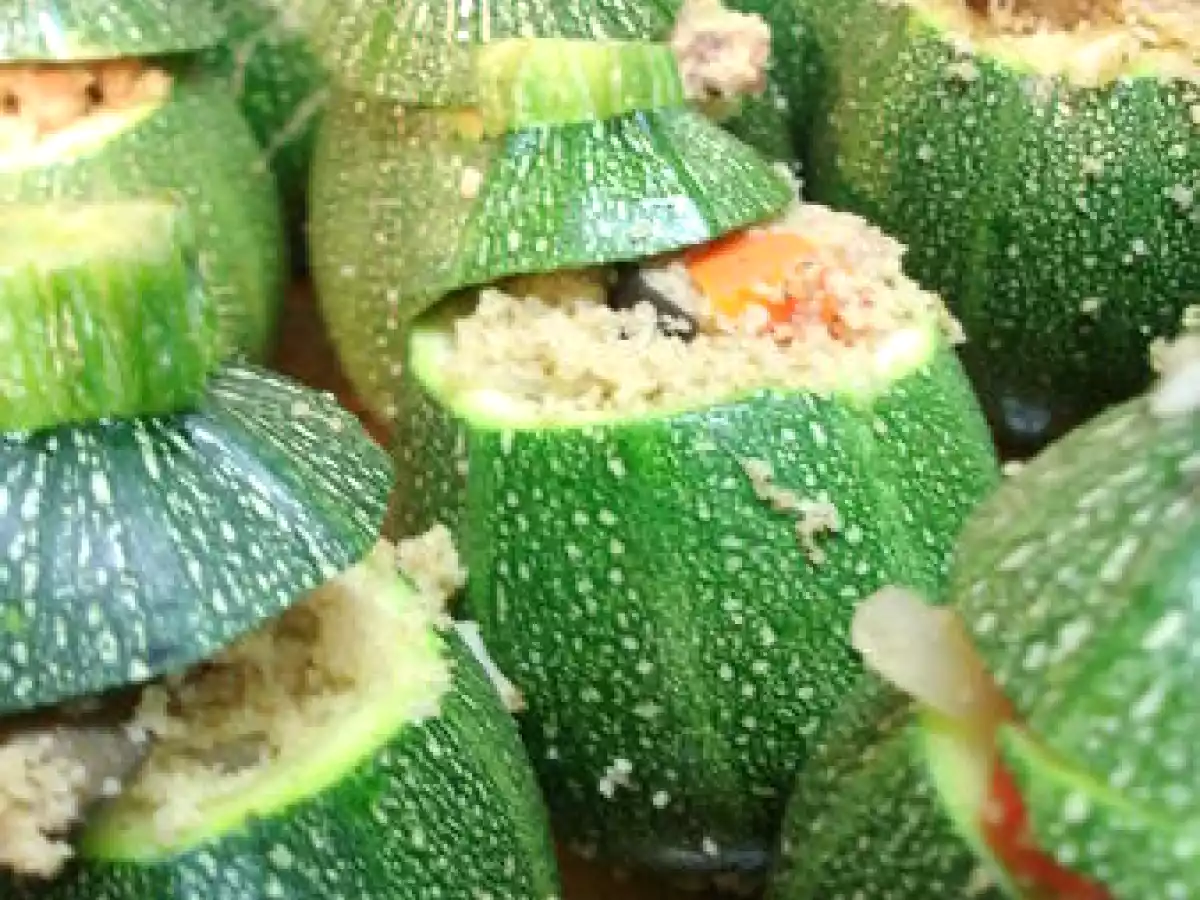 Courgettes rondes farcies à l'orientale votez maintenant Platfacile1 h 14 m Envoyer cette recette à un ami Imprimer cette page Poser une question à l'auteur Publier votre photo de cette recette Ingrédients 4 10 courgettes rondes 4 carottes 2 oignons 1/2 aubergine 150 g de pois chiche cuits égouttés 3 gousses d'ail 1 verre de 15 cl de semoule de couscous fine 2 cuillères à soupe de cumin 1 cube de bouillon de volaille ou de bouillon "tajine" huile d'olive sel