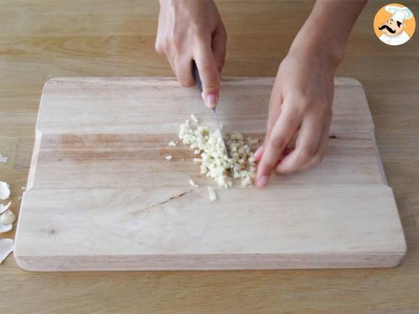 Peler l'oignon et la gousse d'ail puis les couper finement.