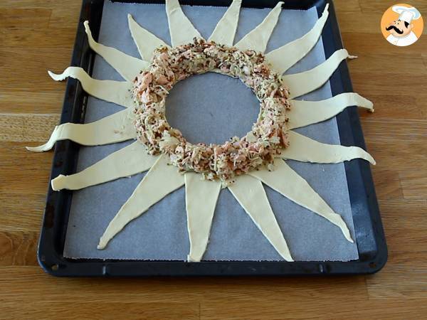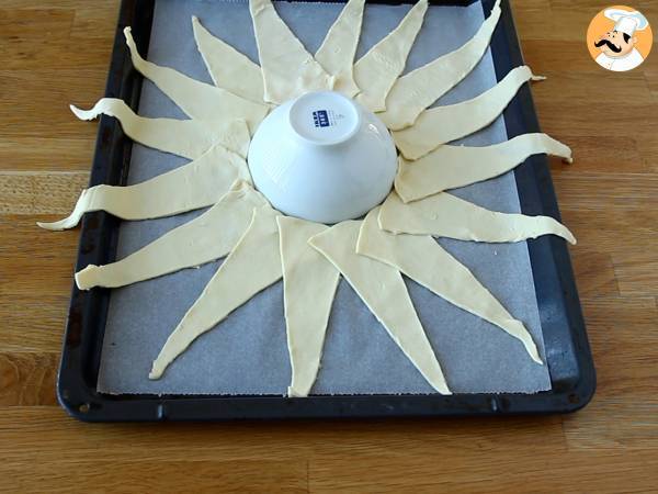 Placer un bol au milieu et déposer les triangles de pâte feuilletée tout autour.