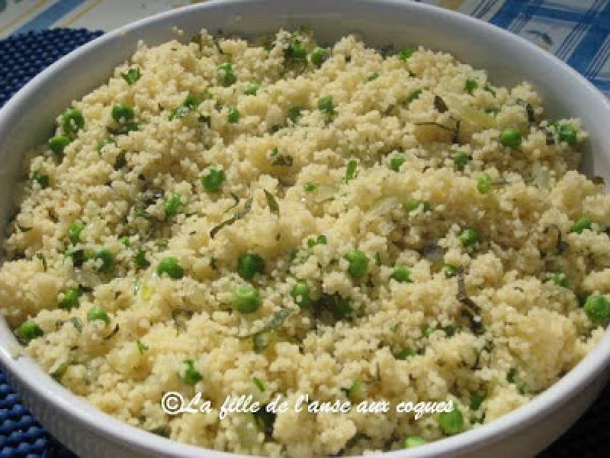 Couscous à la menthe et aux petits pois Platfacile20 min Envoyer cette recette à un ami Imprimer cette page Poser une question à l'auteur Publier votre photo de cette recette Ingrédients 4 1 oignon, haché finement 1 gousse d'ail, hachée finement 3 cuillères à soupe (45 ml) d?huile d'olive 1 tasse (250 ml) de petits pois surgelés, décongelés 1 ½ tasses (375 ml) de bouillon de poulet, bouillant 1 ½ tasses (375 ml) de couscous 3 cuillères à soupe (45 ml) de menthe fraîche, ciselée Sel et poivre au goût