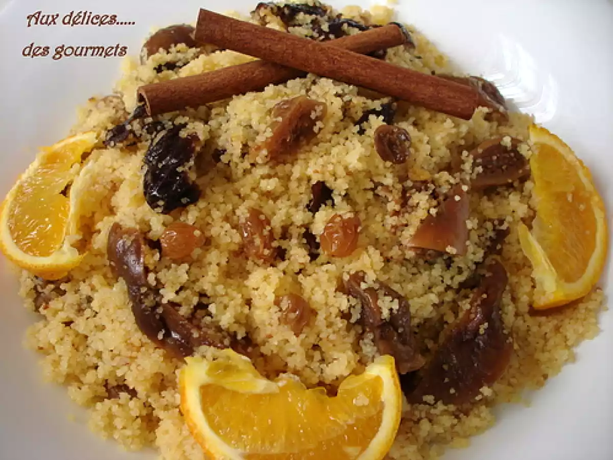 Couscous aux fruits secs et a l'orange votez maintenant Platfacile30 min Envoyer cette recette à un ami Imprimer cette page Poser une question à l'auteur Publier votre photo de cette recette Ingrédients 4 4 figues sèches 2 verres de couscous fin 6 pruneaux secs dénoyautés 60 g de raisins secs 3 verres de jus d?orange ½ verre de miel liquide 1 cuillère à café de cannelle en poudre 1 cuillère à soupe d'huile d'olive 1 pincée de sel