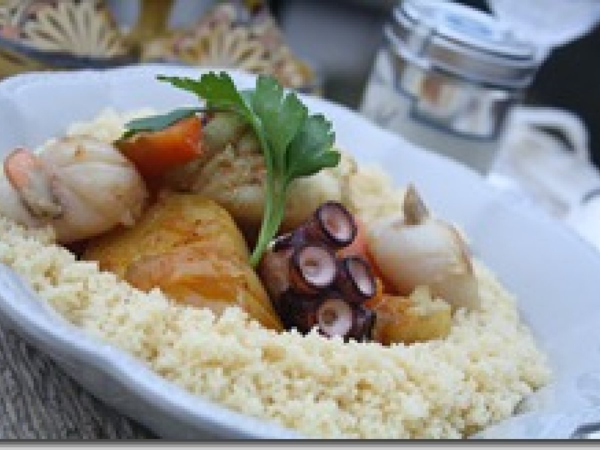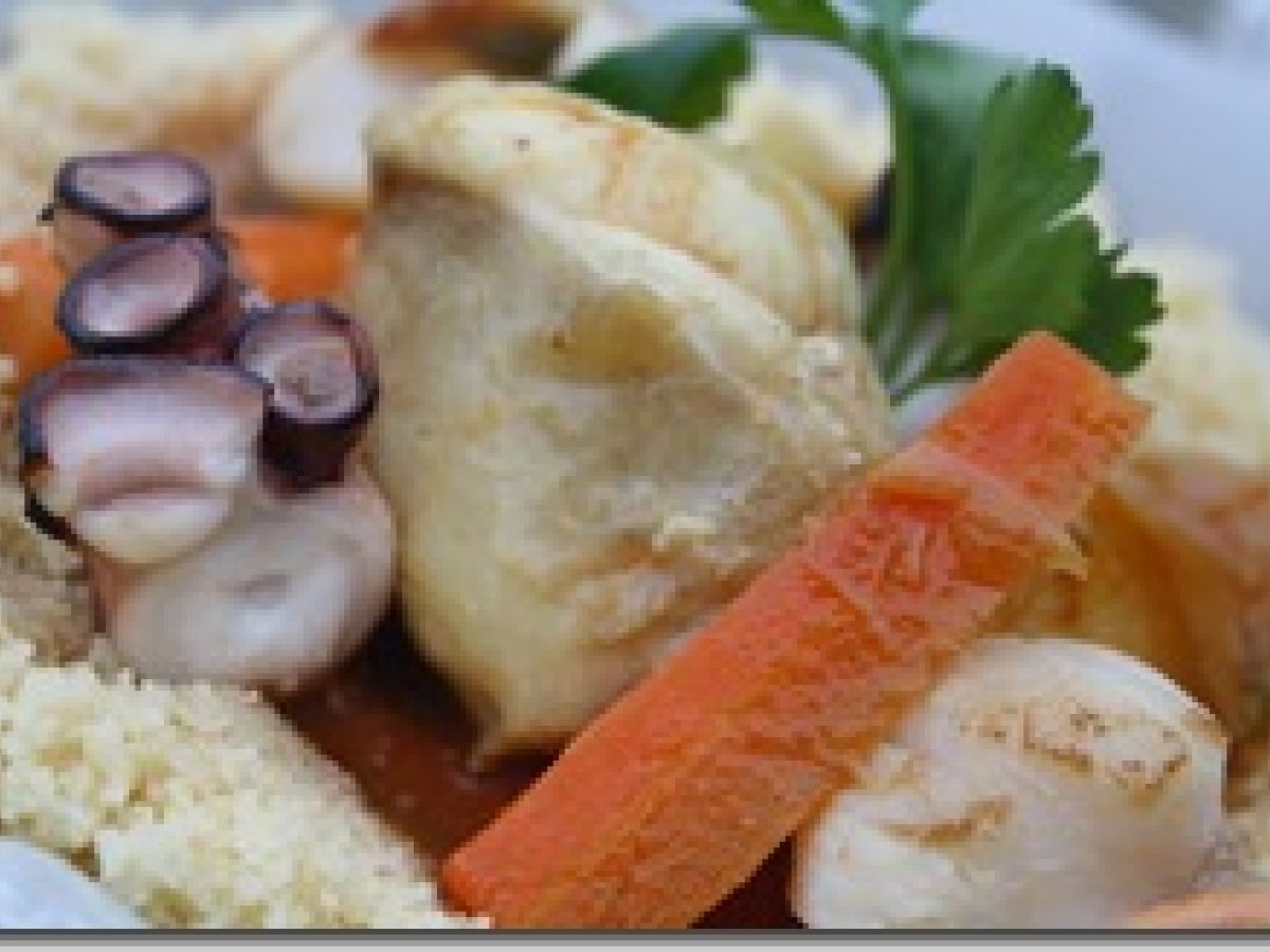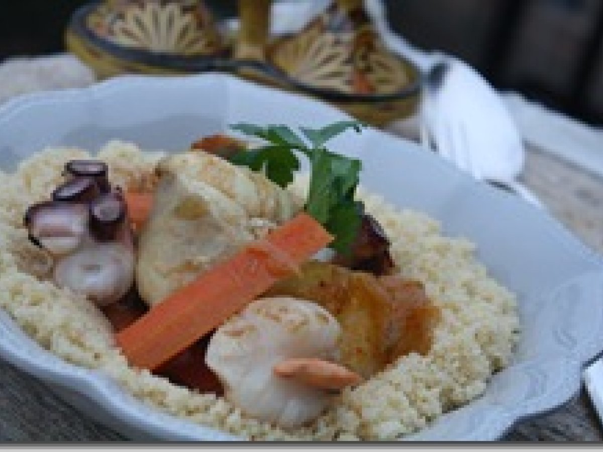 Couscous de poissons au ras el hanout votez maintenant PrécédentSuivant Platfacile1 h 15 m689 Kcal Envoyer cette recette à un ami Imprimer cette page Poser une question à l'auteur Publier votre photo de cette recette Ingrédients 4 1 oignon 2 cuillères à café de ras el hanout 3 cuillères à café de concentré de tomate 30 cl de bouillon de volaille 4 carottes 2 navets 2 bulbes de fenouil 370 g de semoule fine 2 cuillères à soupe d'huile d'olive 1 cube de bouillon de volaille 40 g de beurre 2 pâtes de poulpe 400 g de filet de lotte 8 noix de Saint-jacques Huile sel poivre persil plat Coût estimé: 23.51Euros€ (5.88€/part)