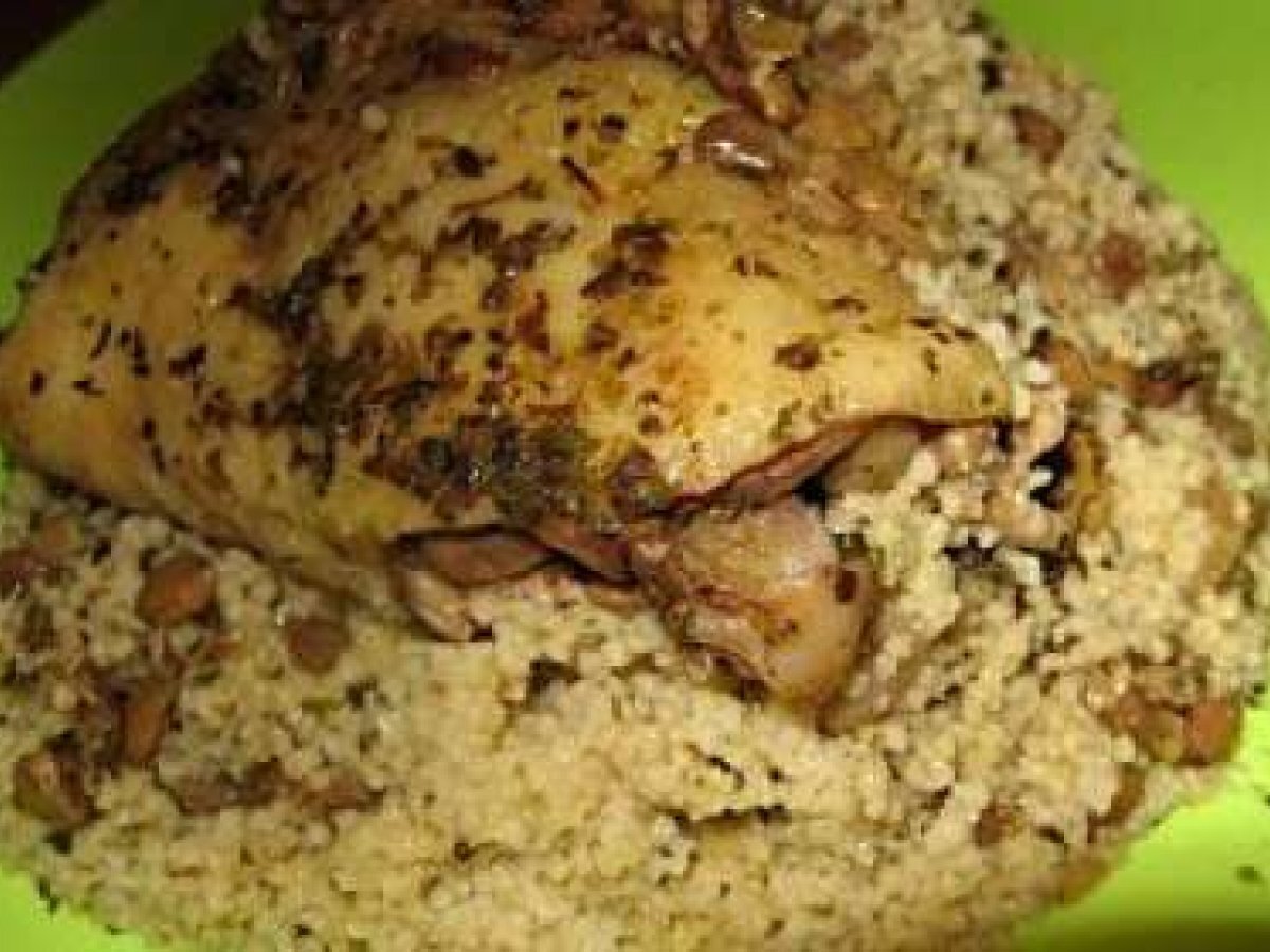 Couscous de poulet aux herbes et épices Platmoyen2 h 10 m Envoyer cette recette à un ami Imprimer cette page Poser une question à l'auteur Publier votre photo de cette recette Ingrédients 6 1 poulet fermier (environ 1,5 Kg) 3 oignons 3 têtes d'ail 1 bouquet de basilic 1 bouquet de majolaine ou 15 gr de marjolaine séchée 1 branche de menthe 1 cuillère à soupe dethym 350 gr de fèves séchées 200 gr de lentilles 500 gr de semoule de couscous 20 cl d'huile d'olive 1 cuillère à café de cardamome en poudre 1/2 cuillère à café de noix de muscade râpée 1 cuillère à café de ras al-hanout 1 cuillère à soupe de fénugrec 1,5 cuillère à café de gingembre en poudre 1 dose de safran 1 cuillère à café de poivre sel