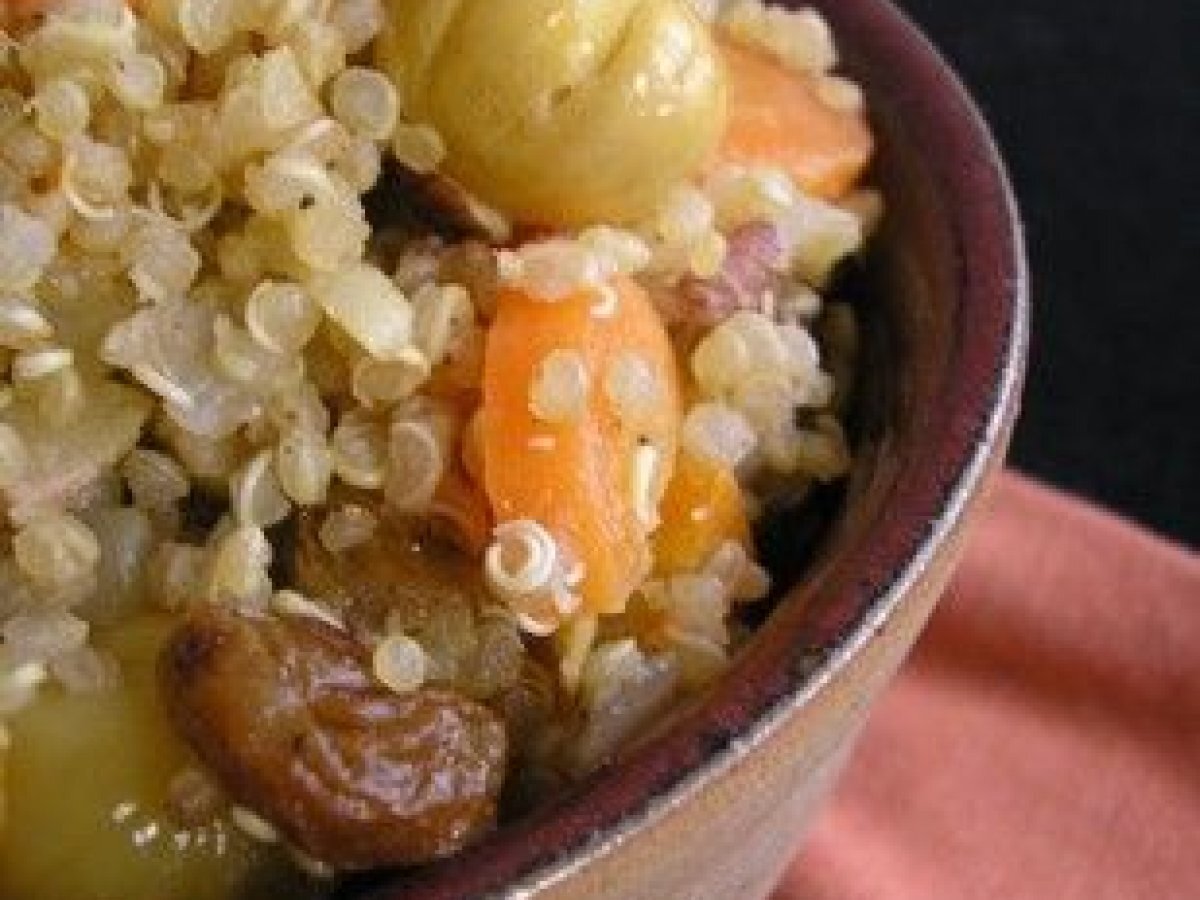 Couscous de quinoa aux châtaignes Platfacile45 min Envoyer cette recette à un ami Imprimer cette page Poser une question à l'auteur Publier votre photo de cette recette Ingrédients 3 1 verre 1/2 de quinoa 3 verres d'eau 1 oignon 4 carottes 100 g de châtaignes cuites une poignée de raisins secs 1/2 cuillère à café de paprika sel et poivre