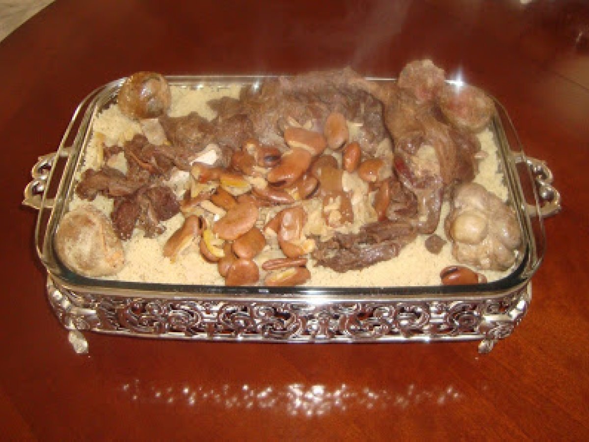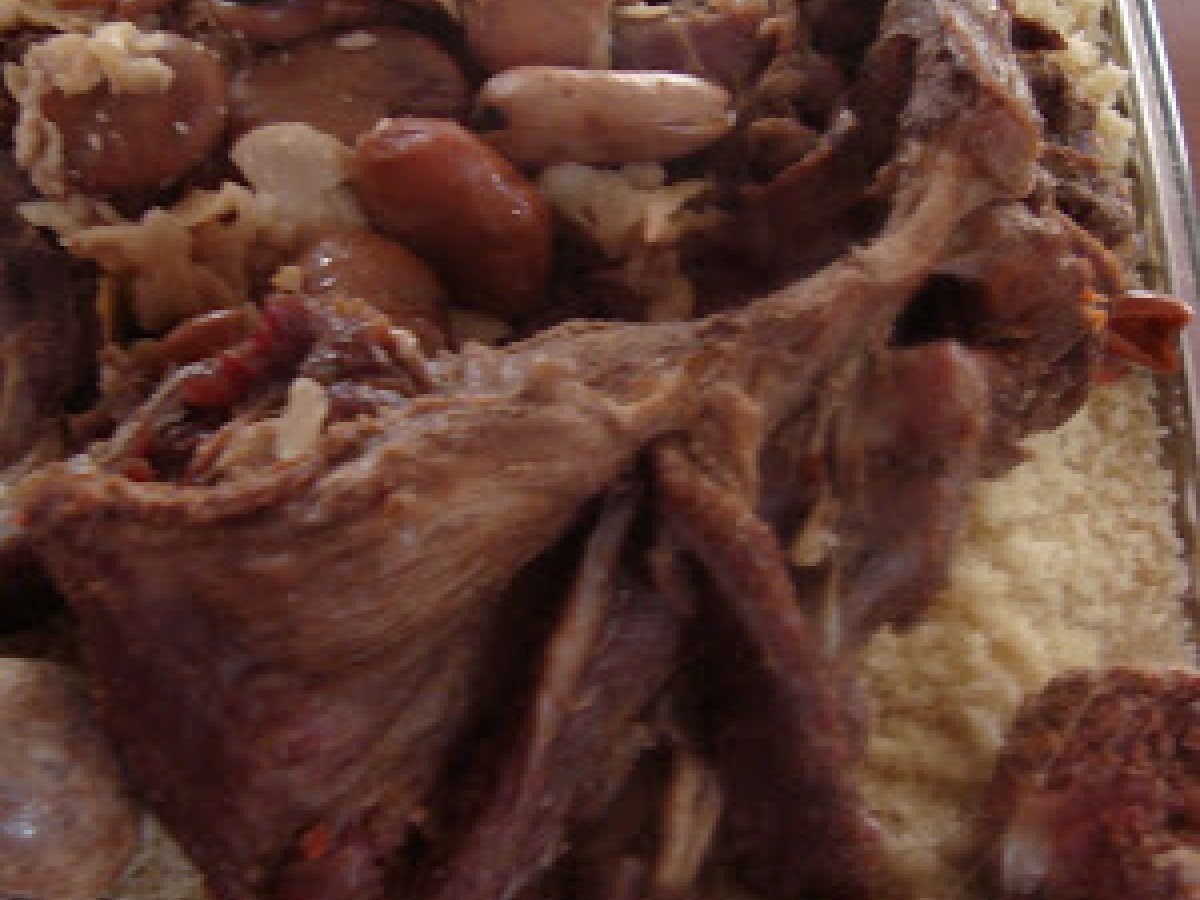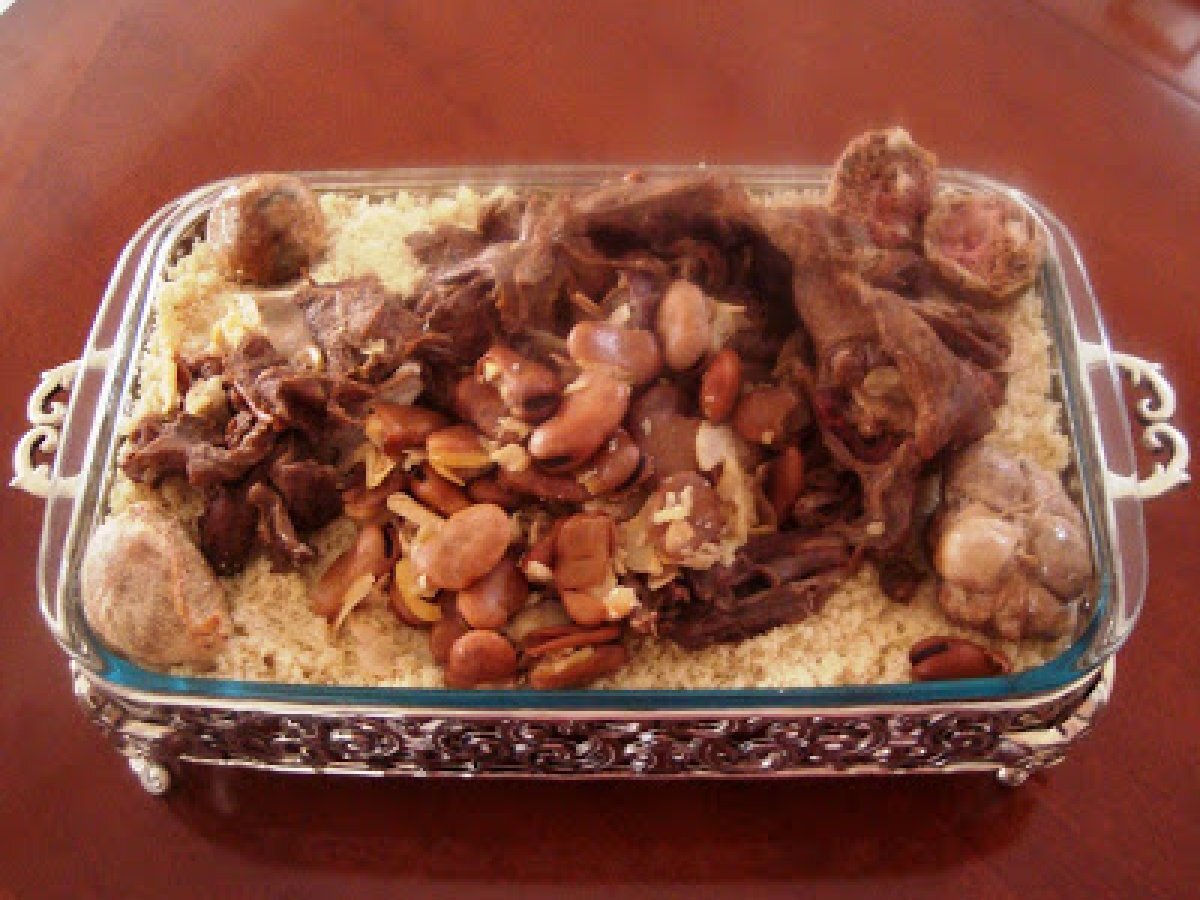 Couscous de ras -el-am..avec un peu de retard et beaucoup d'amertume! PrécédentSuivant Platfacile1 h 50 m700 Kcal Envoyer cette recette à un ami Imprimer cette page Poser une question à l'auteur Publier votre photo de cette recette Ingrédients 6 1 épaule d'agneau séchée 1 kilo de fèves séchées 1.5 de semoule fine de couscous 4 ou 5 andouillettes confites huile d'olive ( remplacée par l'huile de cuisson des andouillettes) sel et poivre