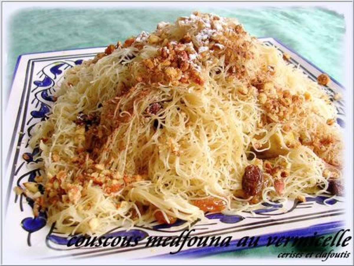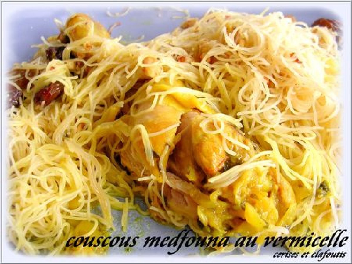 Couscous medfouna aux cheveux d'ange votez maintenant PrécédentSuivant Platfacile35 min Envoyer cette recette à un ami Imprimer cette page Poser une question à l'auteur Publier votre photo de cette recette Ingrédients 8 pour la sauce : 8 MORCEAUX DE POULET ou 4 OIGNONS BLANCS EMINCES 1 Cuillère à C DE SEL 1 Cuillère à café DE GINGEMBRE 1 Cuillère à caféDE CURCUMA 1 BATON DE CANNELLE 1/2 Cuillère à caféDE SAFRAN 1 Cuillère à café DE POIVRE HUILE PERSIL ET CORIANDRE HACHES 20 CL D'EAU pour le vermicelle : 500 GR DE VERMICELLE " CHEVEUX D'ANGE " 1 C à C DE SEL 2 LITRES D'EAU 6 Cuillère à soupe D'HUILE 50 GR DE BEURRE 150 GR DE RAISINS SECS pour les amandes : 150 GR D'AMANDES MONDEES ET GRILLEES UN PEU D'EAU DE FLEUR D'ORANGER pour la déco : 1 Cuillère à soupeDE CANNELLE SUCRE GLACE