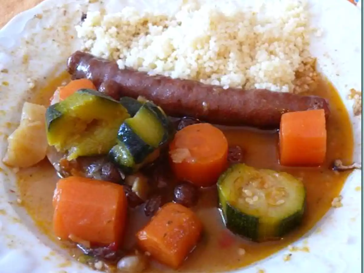 Couscous merguez / poulet Platfacile1 h 5 m301 Kcal Envoyer cette recette à un ami Imprimer cette page Poser une question à l'auteur Publier votre photo de cette recette Ingrédients 8 8 pilons de poulet 8 merguez 2 cuillères à soupe de concentré de tomates 1 cube de bouillon de boeuf 4 petits navets 6 carottes 3 courgettes pois chiches une poignée de raisins secs