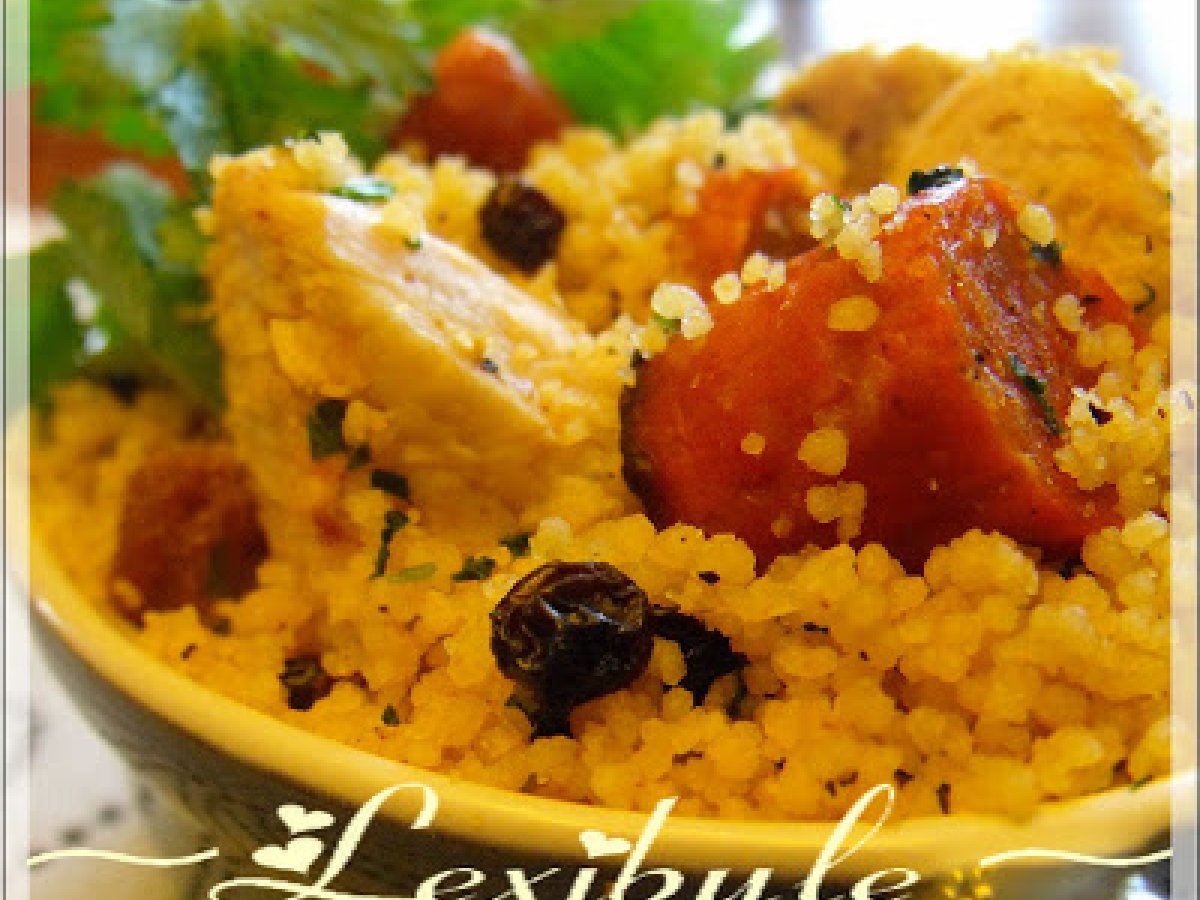 Couscous poulet-merguez à la coriandre PrécédentSuivant Platmoyen25 min Envoyer cette recette à un ami Imprimer cette page Poser une question à l'auteur Publier votre photo de cette recette Ingrédients 6 1 lb de merguez blanchies, coupées en tronçons 2 cuillères à soupe d'huile d'olive 2 tasses de bouillon de poulet 1 tasse de poulet cuit, coupé en cubes 1/2 tasse de raisins secs au choix 1/3 de tasse de coriandre fraîche ciselée 2 tasses de couscous moyen Sel, poivre au goût