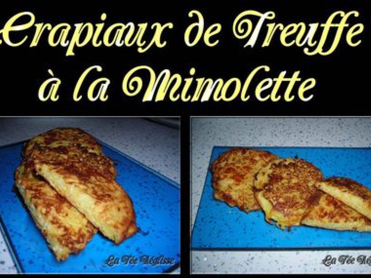 Crâpiaux de treuffes à la mimolette Platfacile30 min442 Kcal Envoyer cette recette à un ami Imprimer cette page Poser une question à l'auteur Publier votre photo de cette recette Ingrédients 4 750 g de pommes de terre 40 g de farine 2 oeufs 75 g de mimolette 15 cL de crème 10 g de beurre Sel poivre muscade