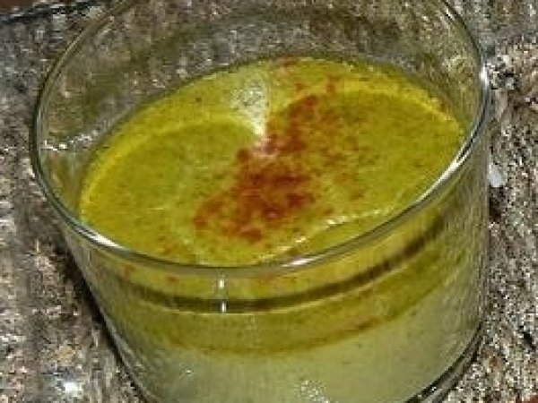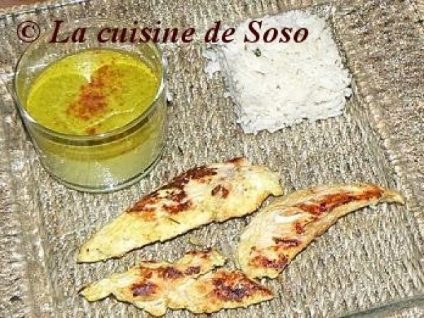 Crème brûlée aux petits pois et curry ,aiguillettes de poulet tandoori..