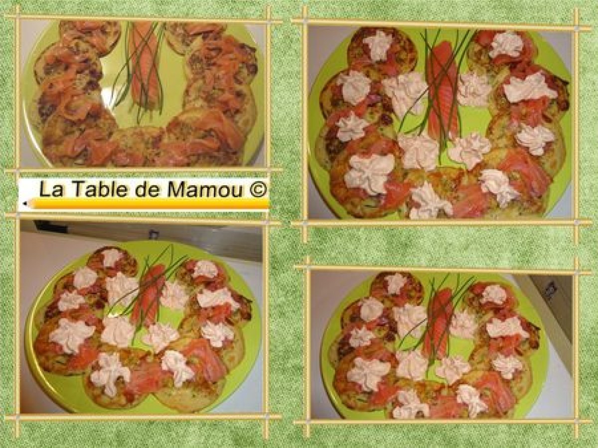 Crêpes aux courgettes et à la mozzarella votez maintenant Platfacile30 min Envoyer cette recette à un ami Imprimer cette page Poser une question à l'auteur Publier votre photo de cette recette Ingrédients 4 2 courgettes 1 échalote 1 cuillère à café d'huile d'olive Sel poivre du moulin 3 oeufs 120 g de farine 15 cl de lait 1 boule de mozzarella Pour la chantilly : 10 cl de crème liquide, 1 cuillère à café de raifort, 2 cuillères à café de concentré de tomate 1 cartouche de gaz pour le siphon 6 tranches de saumon fumé 10 brins de ciboulette