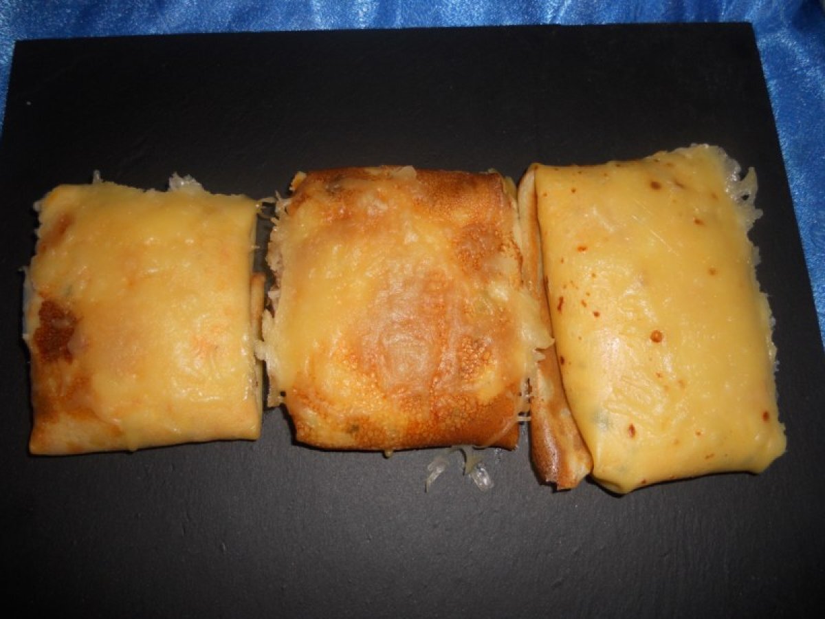 Crêpes aux trois fromages Platfacile32 min Envoyer cette recette à un ami Imprimer cette page Poser une question à l'auteur Publier votre photo de cette recette Ingrédients 4 250 g de farine 3 oeufs 500 ml de lait 1 cuillère à soupe dhuile Sel Garniture Béchamel : 500 ml de lait 50 g de farine 50 g de beurre Sel poivre noix de muscade 100 g demmental 100 g de mozzarella 100 g de mimolette 2 cuillères à soupe de persil
