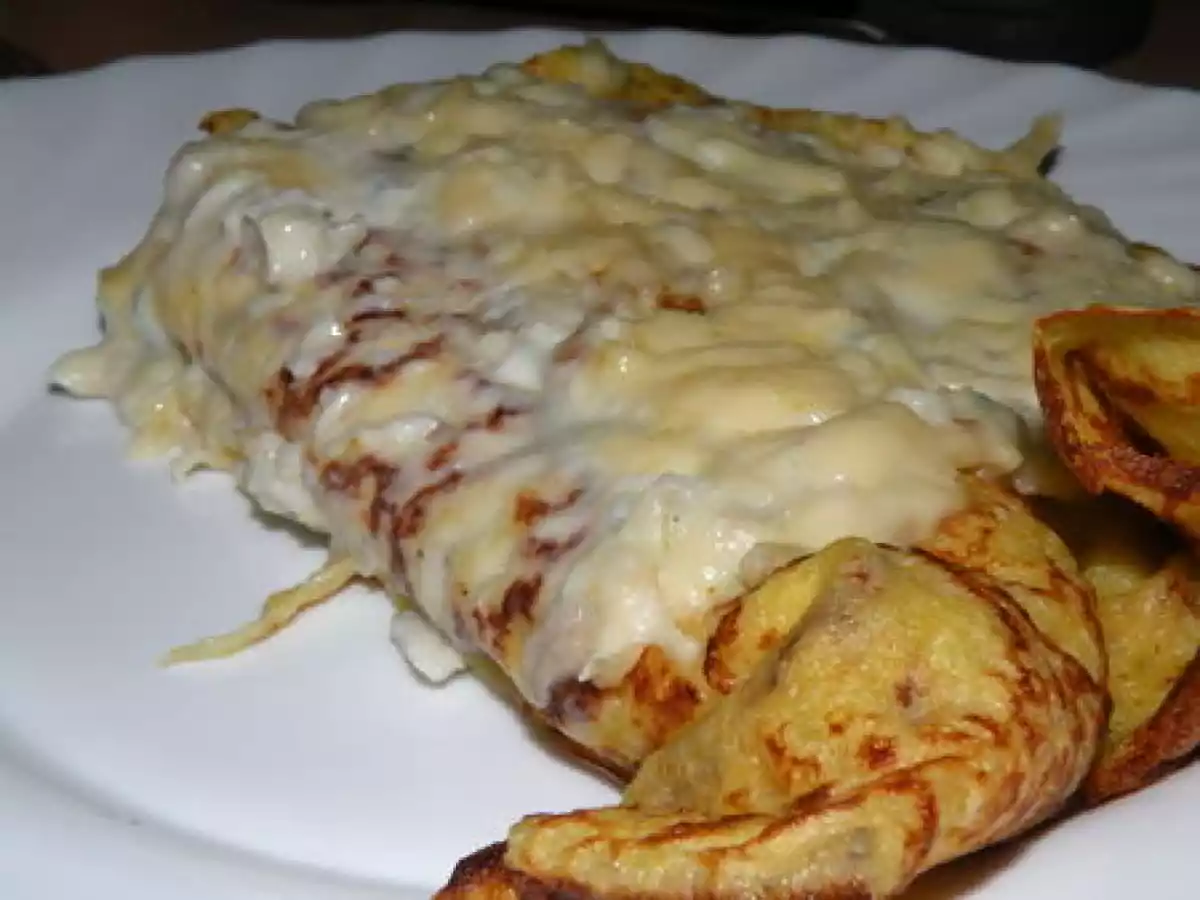 Crêpes roulées au poisson et au curry PrécédentSuivant Platfacile50 min Envoyer cette recette à un ami Imprimer cette page Poser une question à l'auteur Publier votre photo de cette recette Ingrédients 2 Pâte à crêpes: 1/4 l de lait 60 g de margarine 3 oeufs 125 g de farine 1 pincée de sel Garniture pour 4 crêpes: 200 g de filet de lieu noir 25 g de beurre 25 g de farine 25 cl de lait 1 + 1/2 échalotes 1 petite barquette de Tartare "Ligne et Plaisir" 20 de Bleu d'Auvergne 10 dl de vin blanc sec emmental râpé sel et poivre curry