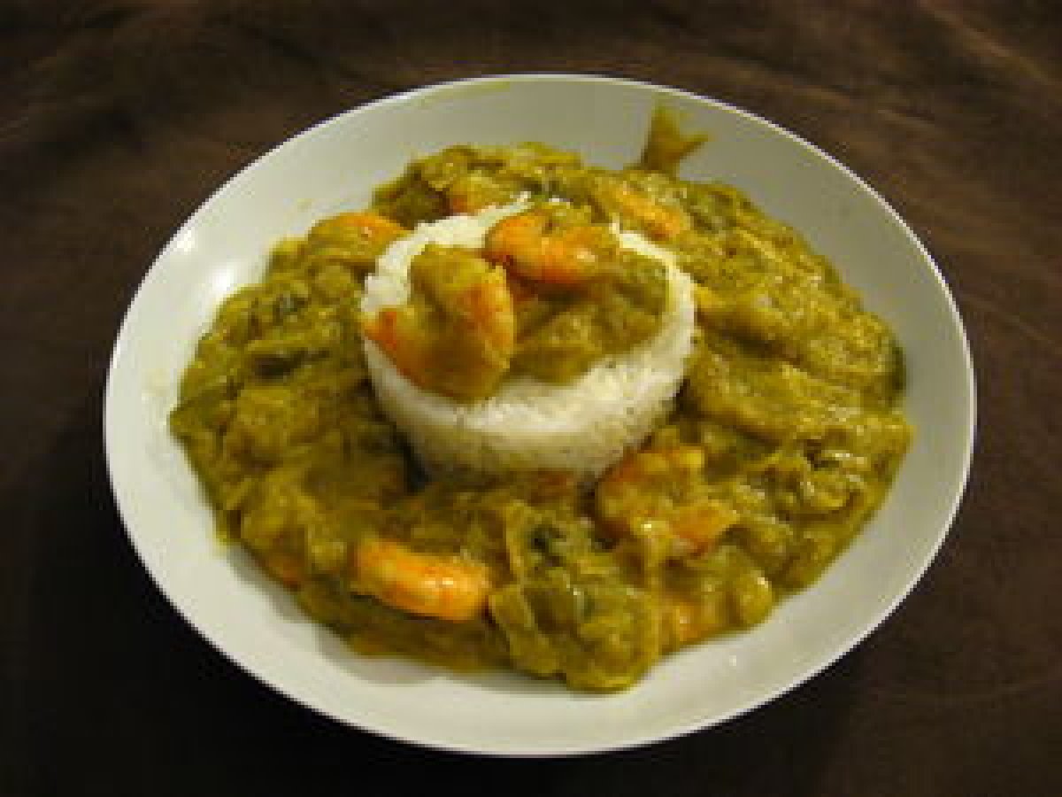 Crevettes et poireaux au curry et coco