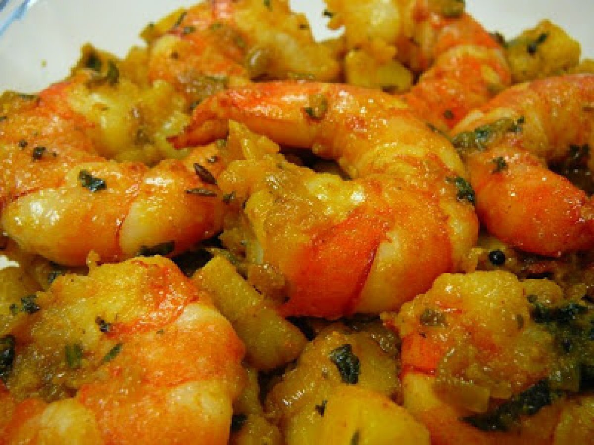Crevettes sautés aux graines de cumin et de moutarde. votez maintenant PrécédentSuivant Platfacile25 min326 Kcal Envoyer cette recette à un ami Imprimer cette page Poser une question à l'auteur Publier votre photo de cette recette Ingrédients 4 2 cuillères à soupe de l'huile 10 feuilles de curry 500 g de grosses crevettes 2 grosses pommes de terre, pelées et coupées en dès 2 gros oignons, hachés 1 gousse d'ail, hachée 3 cm de gingembre frais, râpé 1 cm de curcuma frais, râpé 1 cuillère à café de graines de cumin 1 cuillère à café de graines de moutarde 1 cuillère à soupe de feuille de coriandre, ciselées 1 cuillère à café de feuilles de menthe, ciselées Sel et poivre 2 piments verts, hachés Jus de citron Coût estimé: 15.51Euros€ (3.88€/part)