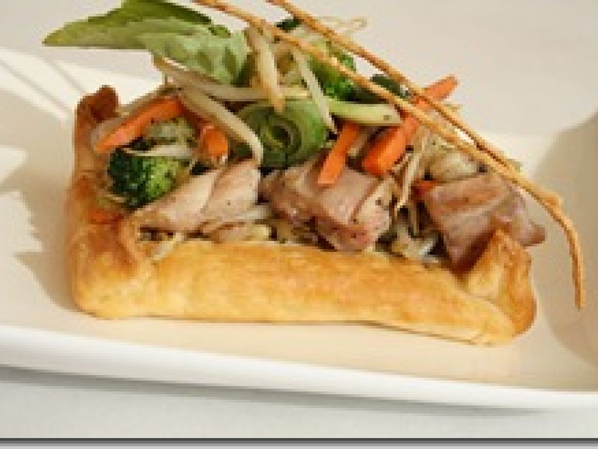 Croustillant de dinde et légumes wokés, crème légère au curry Platfacile50 min Envoyer cette recette à un ami Imprimer cette page Poser une question à l'auteur Publier votre photo de cette recette Ingrédients 4 2 rouleaux de pâte feuilleté 25 cl de lait 20 g de maïzena ½ cuillère à café de curry 1,5 cuillère à soupe de Philadelphia ou Saint-Morêt 600 g d'épaule de dinde désossée 100 g de brocolis 100 g de chou fleur 100 g de carotte 100 g de germe de soja 1 oignon cébette huile beurre sel poivre feuilles de basilic