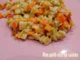 - Une fois les légumes cuits, rajouter les lardons, et mélanger le tout.