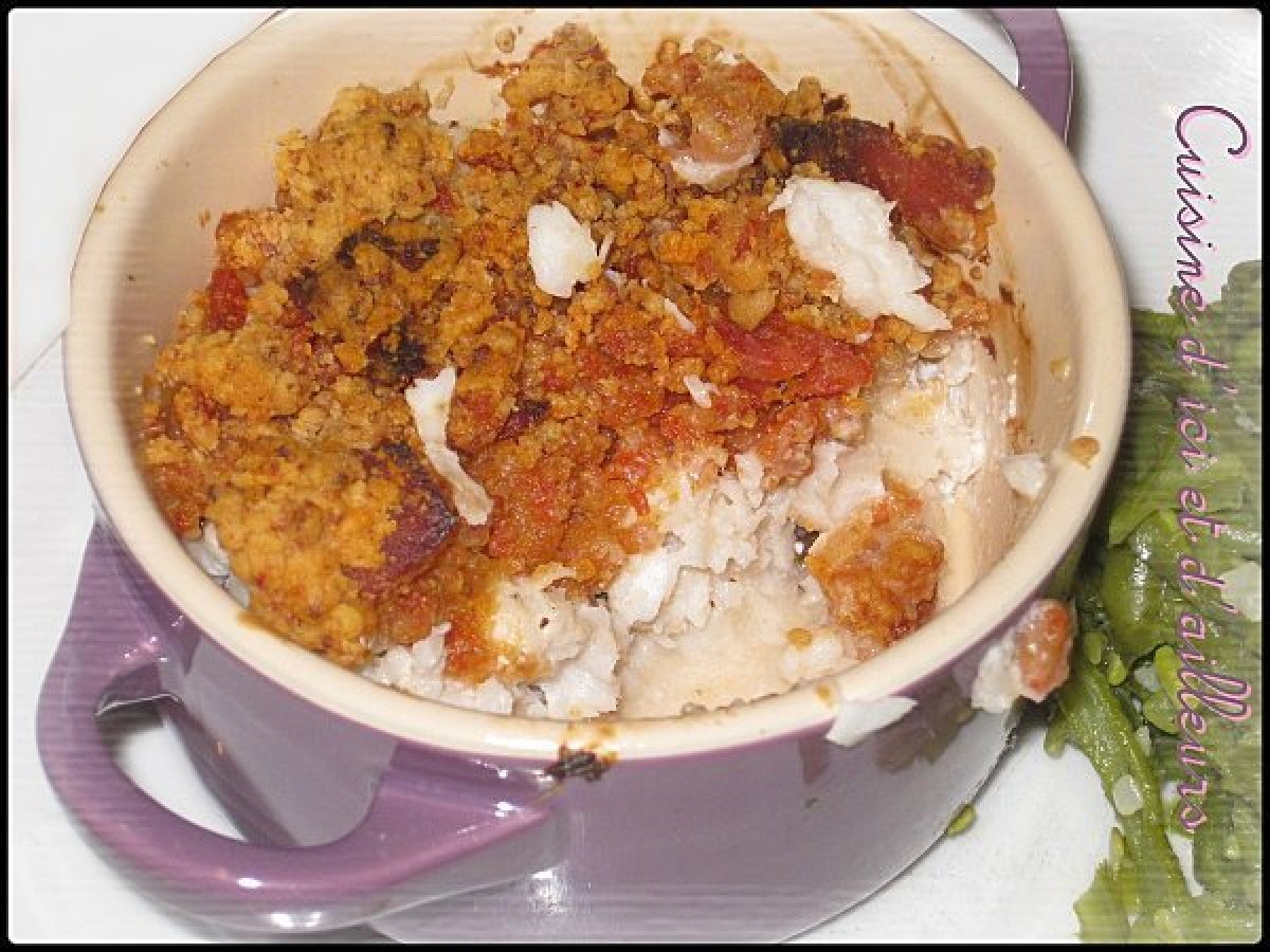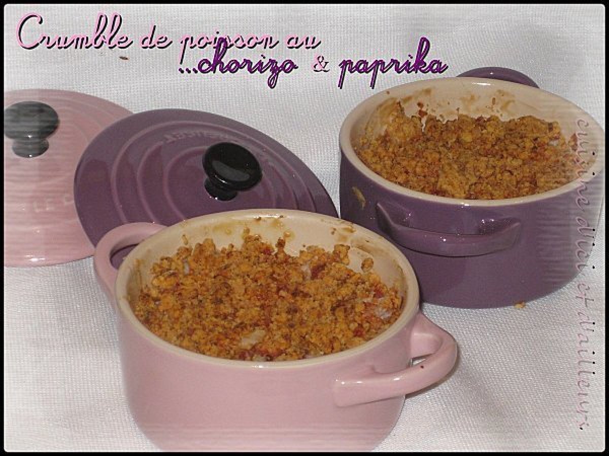 Crumble de poisson blanc au chorizo & paprika PrécédentSuivant Platfacile25 min290 Kcal Envoyer cette recette à un ami Imprimer cette page Poser une question à l'auteur Publier votre photo de cette recette Ingrédients 4 4 filets de poisson blanc (merlu pour moi) 5 grosses tranches de chorizo 1 CC de paprika 30 gr de farine 20 gr de beurre 2 CC de levure chimique Coût estimé: 4.08Euros€ (1.02€/part)