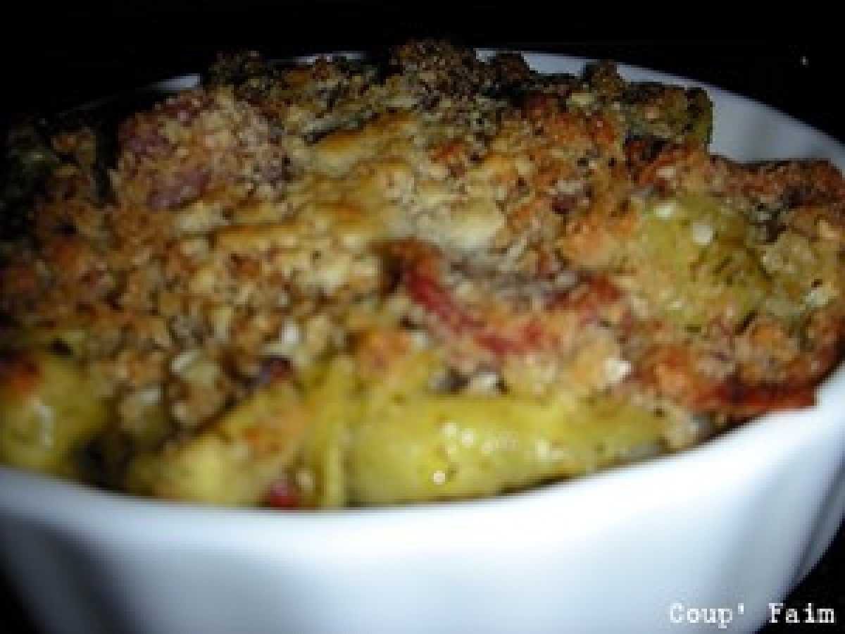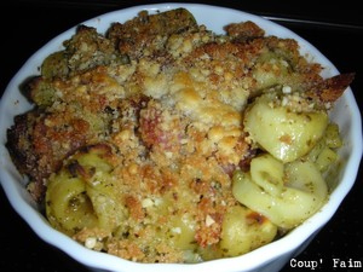 Crumble de tortellini au pesto, jambon cru et parmesan ...