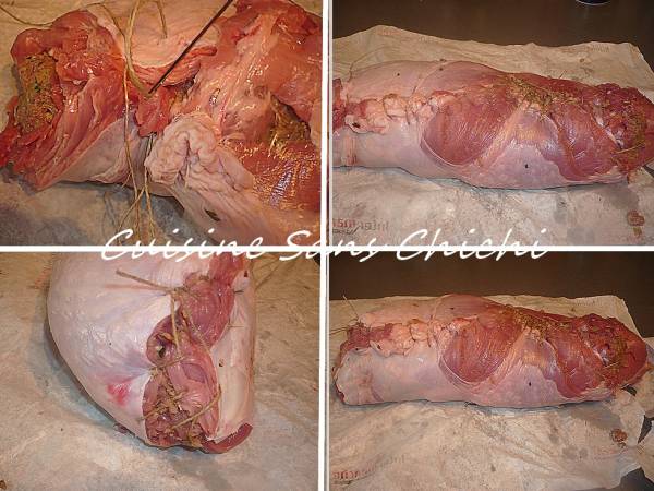 Une manière originale de cuisiner une cuisse de dinde avec une petite touche asiatique. Il vous faudra de la ficelle et une grosse aiguille de cuisine.