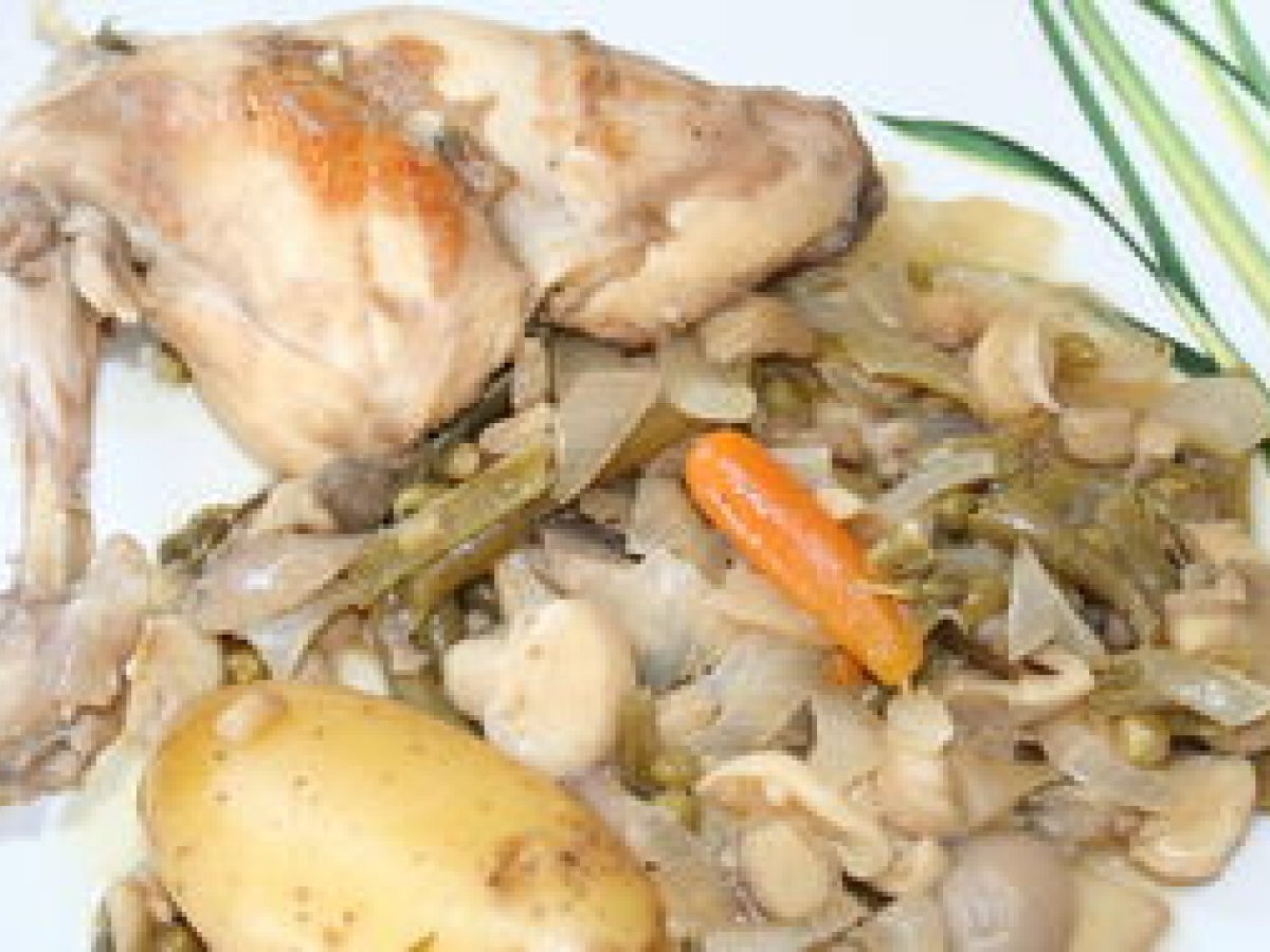Cuisses de lapin au vin blanc Platfacile1 h 15 m1915 Kcal Envoyer cette recette à un ami Imprimer cette page Poser une question à l'auteur Publier votre photo de cette recette Ingrédients 2 2 cuisses de lapin 40 cl de vin blanc 1 oignon 1 cuillère à café de moutarde 1 boite de champignons de Paris 4 pommes de terre farine sel poivre au moulin 1 feuille de laurier thym 1 clou de girofle