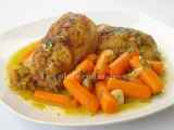 Cuisses de poulet au vin blanc, à la crème et aux champignons