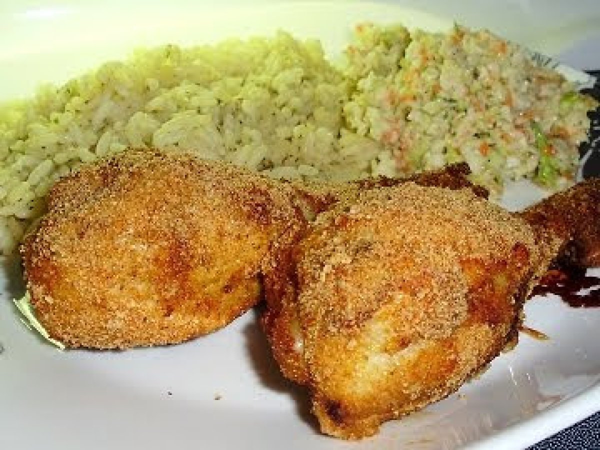 Cuisses de poulet shake'n bake revisité votez maintenant Platfacile40 min Envoyer cette recette à un ami Imprimer cette page Poser une question à l'auteur Publier votre photo de cette recette Ingrédients 4 1 tasse de grains de riz grillés au four (Rice Krispies) ½ tasse de chapelure (ou 2 tranches de pain sec) 1 cuillère à soupe de poudre d?oignon 1 cuillère à soupe de paprika ou paprika fumé 1 cuillère à soupe de moutarde en poudre ½ cuillère à thé de graines de coriandre moulues ½ cuillère à thé de graines de cumin moulues ½ cuillère à thé de sel de céleri ½ cuillère à thé de sel ¼ cuillère à thé de poivre de Cayenne 2 cuillères à soupe d?huile d?olive 4 cuisses de poulet (moi, 8 pilons sans la peau) 1 oeuf, légèrement battu