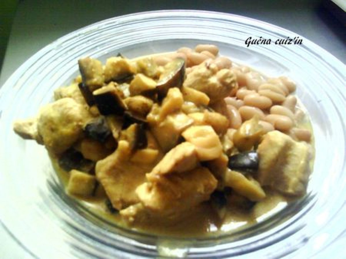Curry de dinde aux aubergines votez maintenant Platfacile25 min Envoyer cette recette à un ami Imprimer cette page Poser une question à l'auteur Publier votre photo de cette recette Ingrédients 4 4 escalopes de dinde 10 cl de lait de coco 10 cl de crème fraiche 4 % 2 cuillères à café huile d'arachide 1 cuillère à soupe de curry 1 cuillère à café de 5 épices 3 aubergines 1 oignon 1 gousse d'ail 15 g amandes effilées