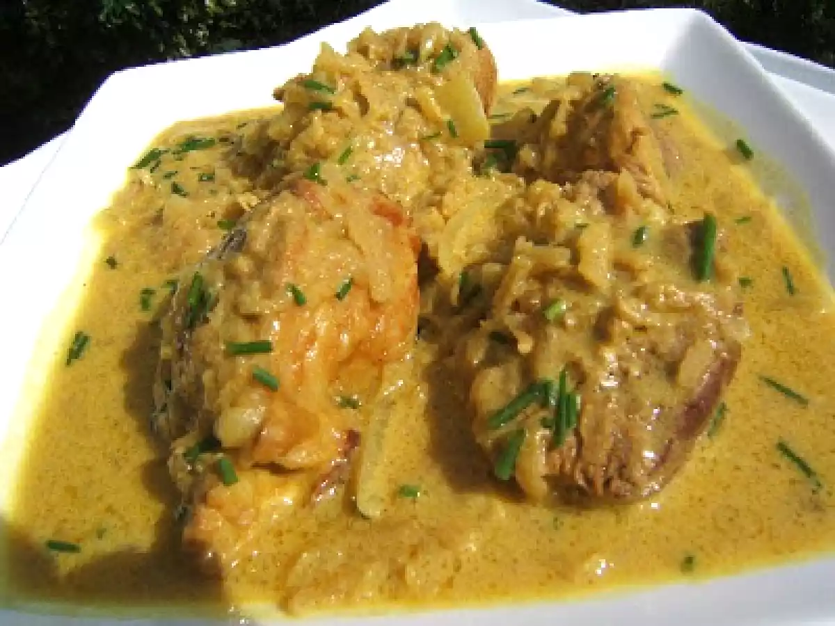 Curry de filet mignon au cidre PrécédentSuivant Platfacile1 h 55 m1699 Kcal Envoyer cette recette à un ami Imprimer cette page Poser une question à l'auteur Publier votre photo de cette recette Ingrédients 2 2 beaux filets mignons de porc 4 pommes à cidre 0.50 cl de cidre brut 25 cl de crème fraîche épaisse 3 oignons jaunes 2 cuillères à soupe de curry madras ou autre 2 cuillères à soupe d'huile d'olive sel ciboulette pour décorer les assiettes Coût estimé: 18.43Euros€ (9.22€/part)