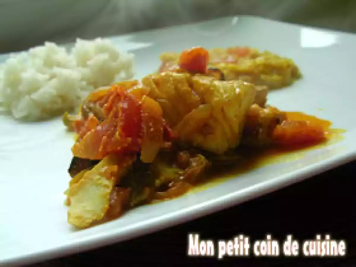 Curry de poisson aux oignons et aux tomates sans lait et sans gluten Platfacile23 min Envoyer cette recette à un ami Imprimer cette page Poser une question à l'auteur Publier votre photo de cette recette Ingrédients 6 800 g de lieu noir 6 tomates 4 petits oignons ou 3 de taille moyenne 4 cuillères à soupe d'huile d'olive 1 yaourt de brebis 1 cuillère à café de paprika, curcuma, coriandre 4 cm de gingembre 2 petits piments verts