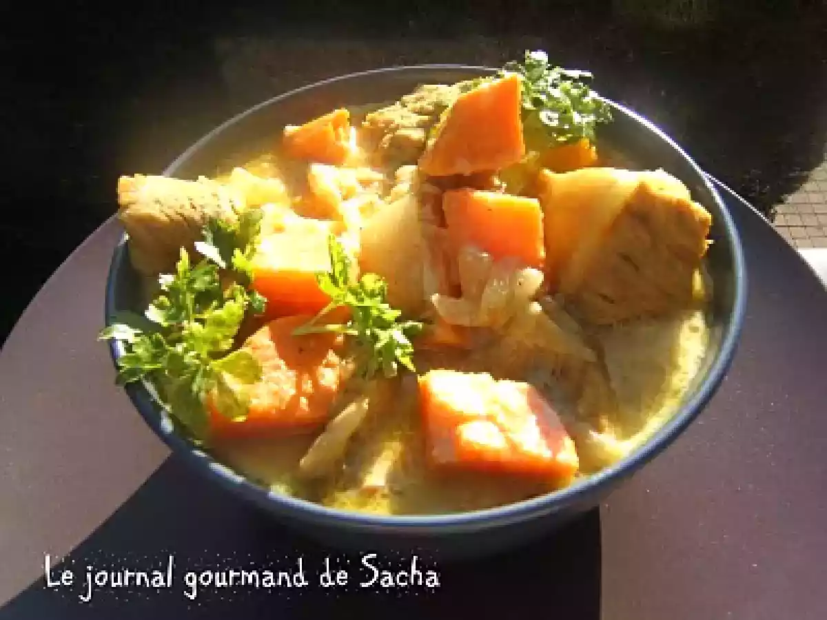 Curry de porc à la patate douce PrécédentSuivant Platfacile1 h 15 m Envoyer cette recette à un ami Imprimer cette page Poser une question à l'auteur Publier votre photo de cette recette Ingrédients 6 800 g de patates douces 1 kg d'échine de porc 75 cl de lait de coco 50 cl de bouillon de poule 3 oignons 1 cuillère à soupe de pâte de curry rouge ou 1 cuillère à soupe de curry madras 3 cuillères à soupe d'huile 1 morceau de gingembre frais de la coriandre sel poivre