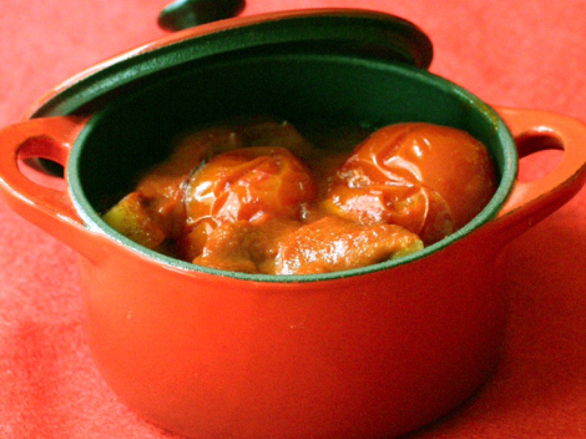 Curry de porc au lait de coco pour déjeuner épicurien ou dîner nonchalant Platfacile55 min Envoyer cette recette à un ami Imprimer cette page Poser une question à l'auteur Publier votre photo de cette recette Ingrédients 4 500 g de filet de porc 3 belles patates 2 oignons rouges 1 barquette de tomates cerises 2 cuillères à soupe d'huile végétale 1 cuillère à soupe de pâte de curry rouge 200 g de concentré de tomates 40 cl de lait de coco 1 cuillère à soupe de sauce de poisson 1 cuillère à soupe de paprika 2 cuillères à soupe de cassonade 1 sauteuse