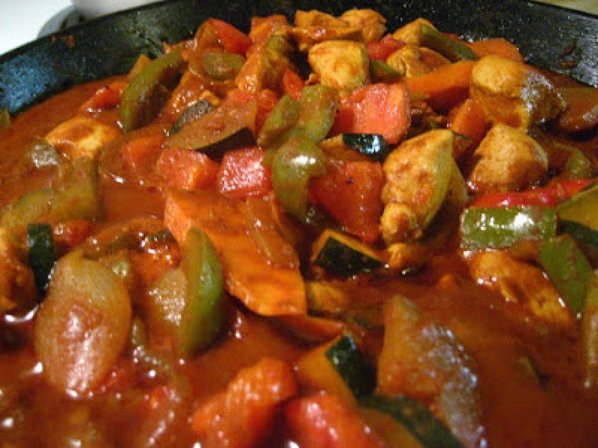 Curry de poulet aux légumes à l'indienne PrécédentSuivant Platfacile30 min Envoyer cette recette à un ami Imprimer cette page Poser une question à l'auteur Publier votre photo de cette recette Ingrédients 4 1 cuillère à soupe d'huile 1 oignon, moyen, haché 1 lb de poulet désossé, sans peau, coupé en cubes 4 tasses de légumes variés frais ou surgelés 1 pot de 400 ml de sauce curry douce 2 grosses tomates, hachées des feuilles de coriandre fraîche et du curcuma
