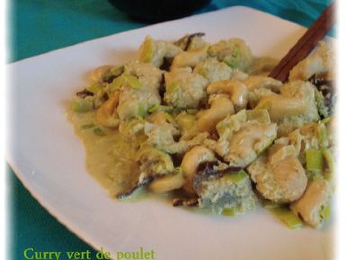 Curry vert de poulet, noix de cajou et poireaux Platfacile40 min Envoyer cette recette à un ami Imprimer cette page Poser une question à l'auteur Publier votre photo de cette recette Ingrédients 4 4 blancs de poulet 1 oignon 1 cs de pâte de curry vert 1 tasse de lait de coco 125 g de noix de cajou le blanc de 2 poireaux 1 poignée de champignons chinois déshydratés