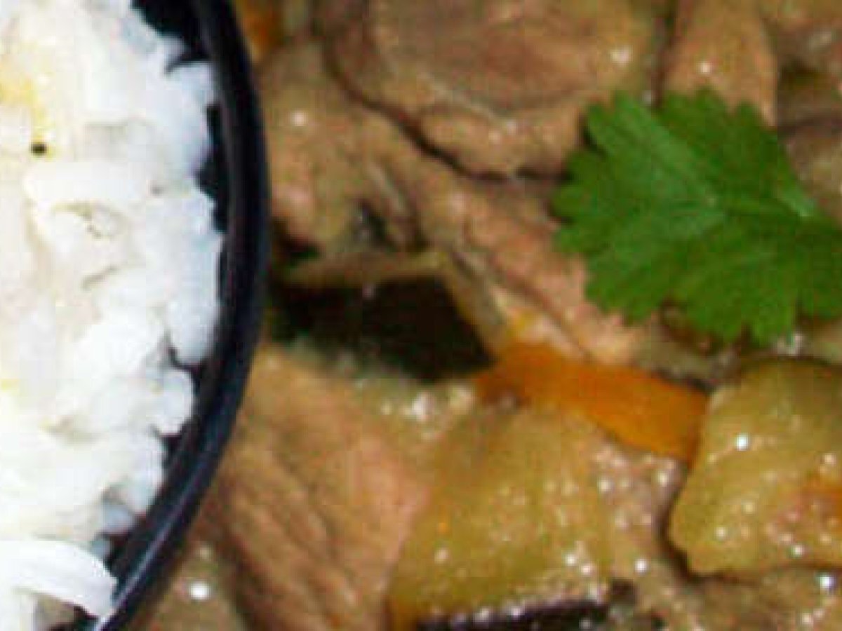 Curry vert thai d'épaule de porc PrécédentSuivant Platmoyen1 h 20 m Envoyer cette recette à un ami Imprimer cette page Poser une question à l'auteur Publier votre photo de cette recette Ingrédients 2 400g dépaule de porc (MAIS vous pouvez utiliser du poulet ou du boeuf!) ½ poivron orange ½ poivron jaune 1 grosse courgette cuil. à soupe de pâte de curry verte 1 boite de lait de coco 2 c à s de sauce soja japonaise (les filles mettent de la sauce nuoc nam - sauce de poisson - mais je nen avais plus, donc jai biaisé, cette sauce servant à saler le curry..). Huile darachide 1 cuillère à soupe de sucre roux Le jus dun citron vert De la coriandre fraîche pour servir