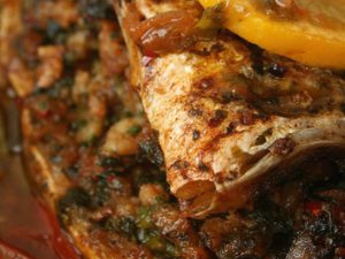 Daurade farcie aux crevettes PrécédentSuivant Platfacile45 min Envoyer cette recette à un ami Imprimer cette page Poser une question à l'auteur Publier votre photo de cette recette Ingrédients 4 1 belle daurade de 500 à 700 g 200 g de petites crevettes décortiquées 1 gros oignon 1 moyenne pomme de terre 1 gros poivron vert 1 gros poivron rouge 2 grosses tomates mûres 1 gousse d'ail 1 cuillère à soupe de persil plat haché 1cuillère à soupe de de coriandre hachée 1 cuillère à café de paprika 1 cuillère à café de gingembre moulu 1/2 cuillère à café de piment doux moulu 1/4 cuillère à café de poivre moulu Huile d'olive Citron jaune Sel