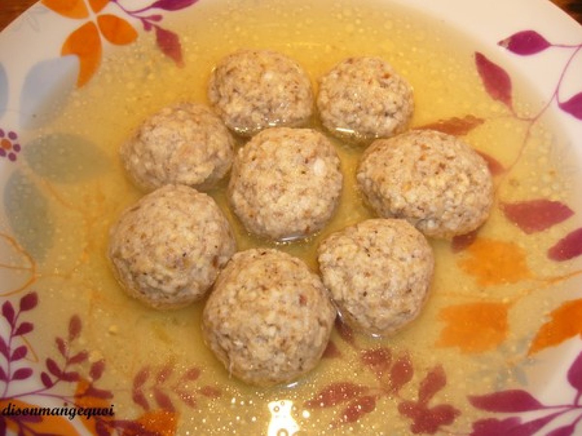 Voici une nouvelle recette de cuisine, cette recette se fait spécialement à l'occasion de Pessah, la fête de Pâques car pendant cette période, toute levure est interdite et la seule farine utilisable est la farine de pain azyme ou la fécule de pomme de terre. C'est une façon ludique de faire manger du bouillon aux enfants!