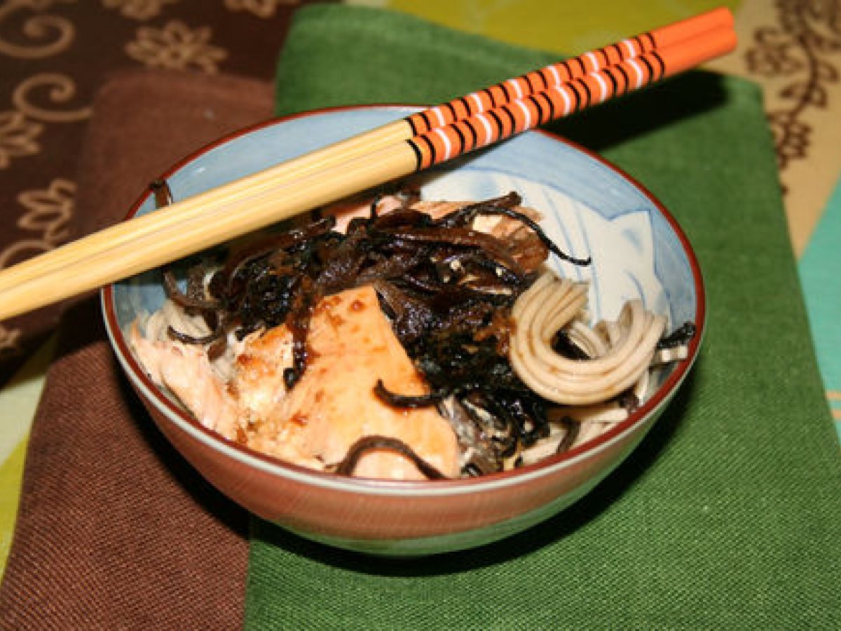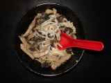 Détournement de recette : nouilles au saumon et champignons noirs,