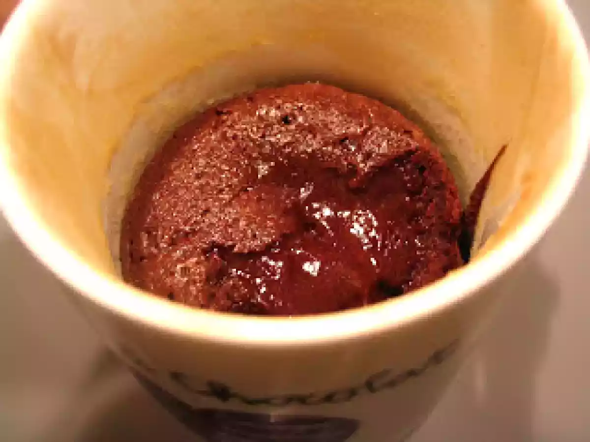 Quand le chocolat à quelque peu refroidi, le verser sur les œufs tout en battant. Réserver jusqu'au moment du dessert. - Préchauffer le four à 200°C.
