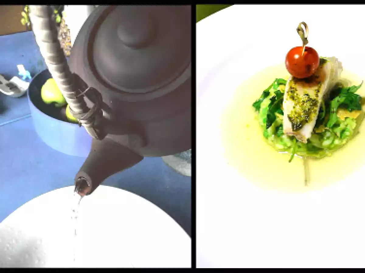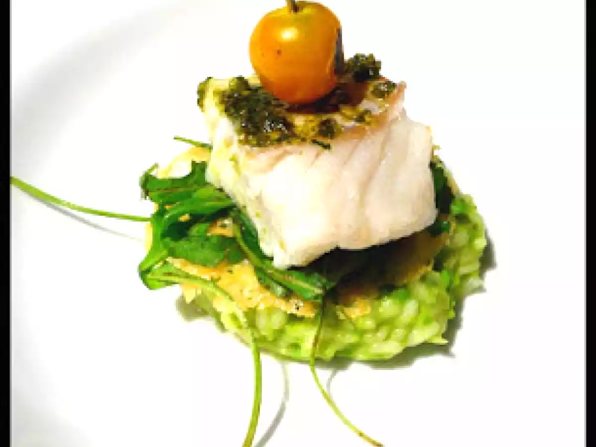 Dos de cabillaud au pesto de pistache, risotto de petits pois PrécédentSuivant Platfacile46 min319 Kcal Envoyer cette recette à un ami Imprimer cette page Poser une question à l'auteur Publier votre photo de cette recette Ingrédients 4 400 g de Cabillaud 250 g de sel de Guérande 125 g de sucre 25 g de poivre noir en gros grain concassés 4 tomates cerise Pesto de pistache et roquette 50 g de roquette un bon morceau de parmesan (pour les tuiles) Risotto de petit pois 0.5l de bouillon clair de poulet Coût estimé: 11.02Euros€ (2.75€/part)